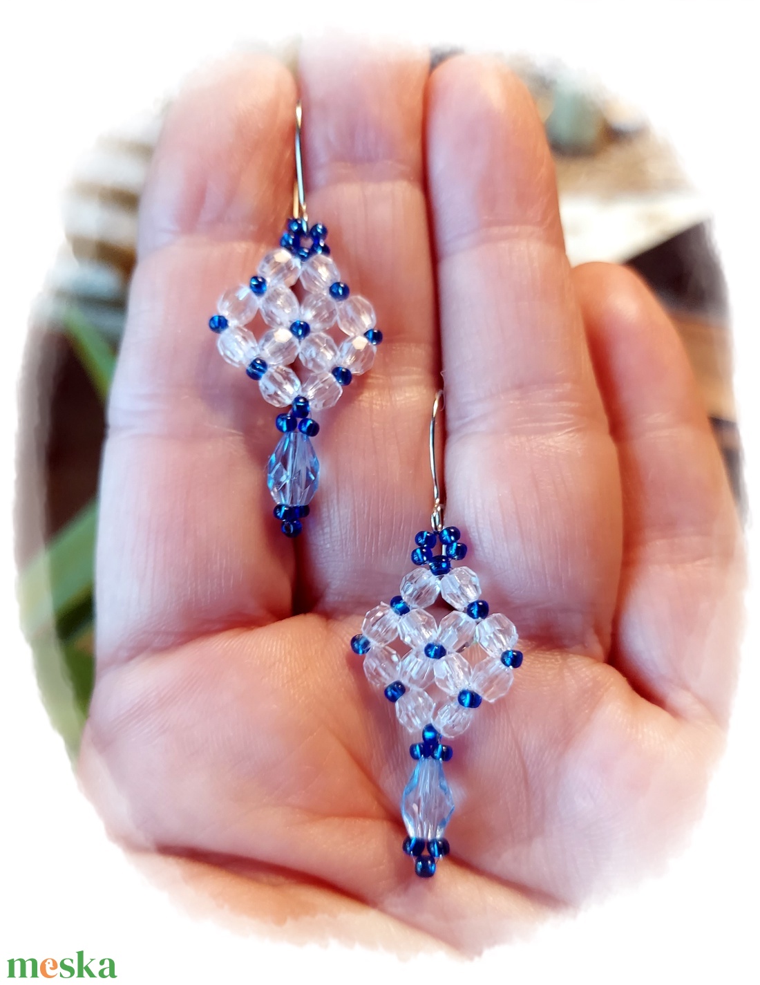 Jégkék kristály gyöngyfülbevaló