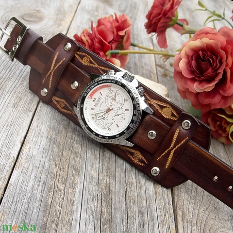 Férfi karóra, Katonai stílusú karóra kézműves dombornyomott óraszíjjal