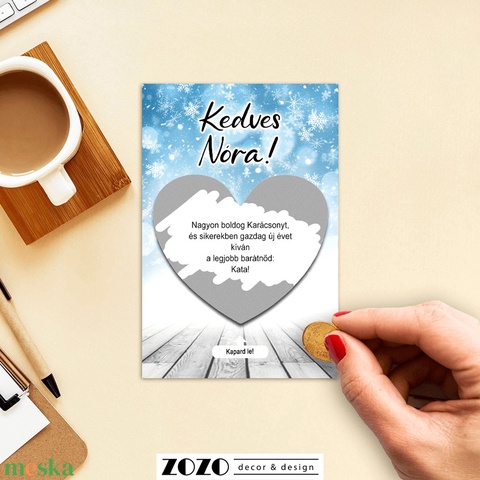 Ismerd meg a karácsonyi kaparós lapjaink egyedi és különleges varázsát, melyek alatt akár a te üzeneted is rejtőzhet! Bármilyen szöveggel kérhető, így a személyre szabott kis üzeneted egy felejthetetlen élménnyné varázsolja. Rendeld meg most, és tedd különlegessé az ünnepet kreatív ajándékokkal, ami garantált mosolyt csal mindenki arcára!