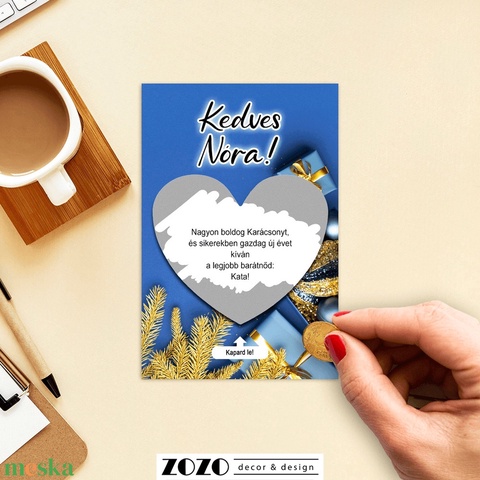 Karácsonyi egyedi kaparós lap üdvözlőkártya általad megadott saját szöveggel személyre szabott felkérő bejelentő ajándék