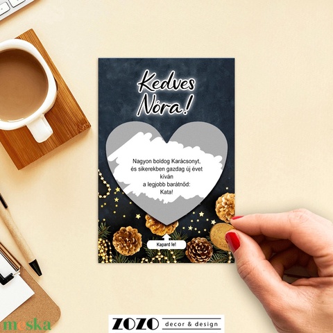 Karácsonyi egyedi kaparós lap üdvözlőkártya általad megadott saját szöveggel személyre szabott felkérő bejelentő ajándék