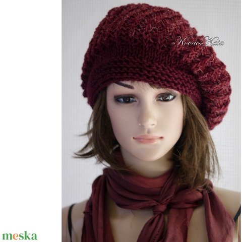 BORBÁLA / bordós - exkluzív kézzel kötött gyapjú-akril sapka, barett
