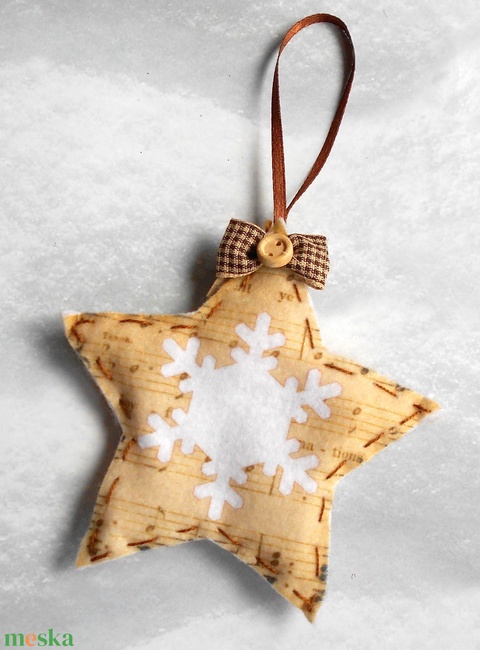 Kottamintás csillag karácsonyfadísz barna kockás masnival