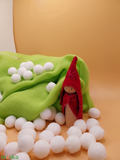 A manó alapja kis fa figura. Bordó gyapjúfilc ruhácskát varrtam neki egy pici kis hímzéssel. Kérhető más színben is. Üzenetben egyeztethető.