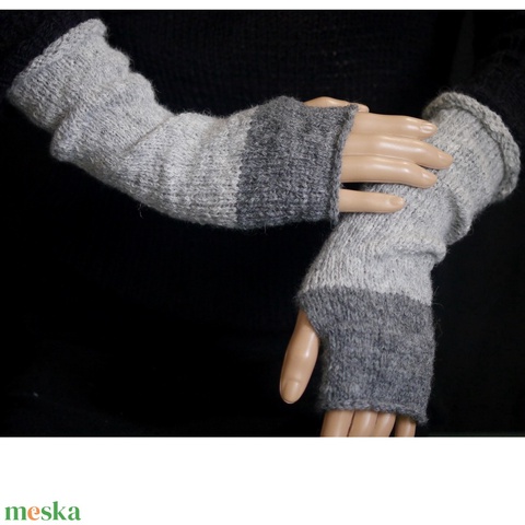 BOSZI-KESZTYŰ / sky - kézzel kötött alpaka kesztyűszár, kézmelegítő / szürkék