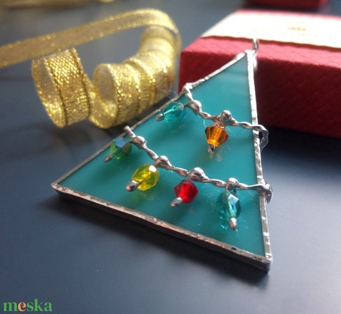 Fenyőfa üvegdísz, ablakdísz, karácsonyfadísz