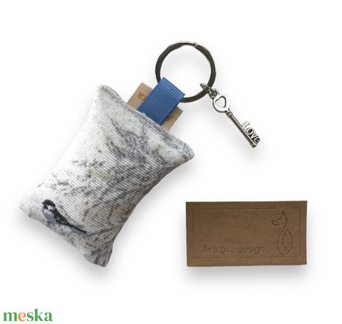 - Anyaga: pamut textil, kulcskarika, hímzőfonal