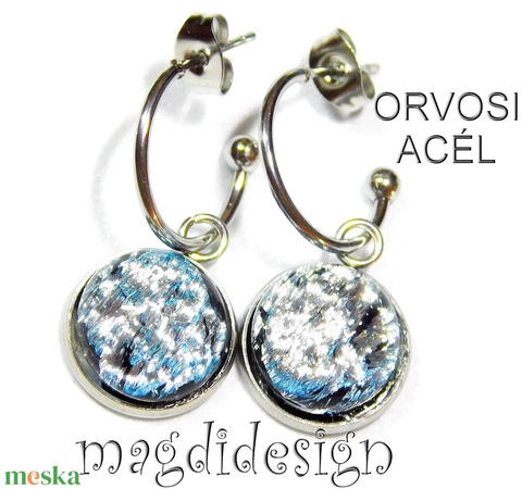 Ezüst üvegékszer stiftes lógós nemesacél fülbevaló