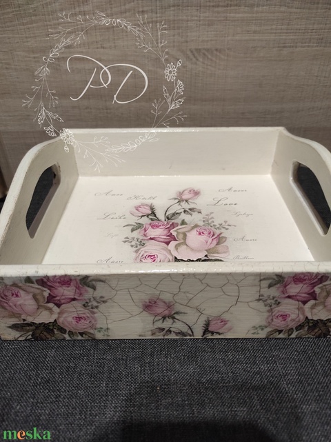 Vintage rózsás tálca