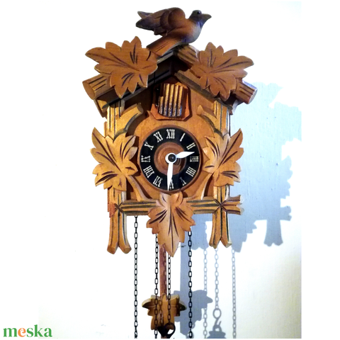 Vintage kicsi faragott Schwarzwaldi kakukkos óra