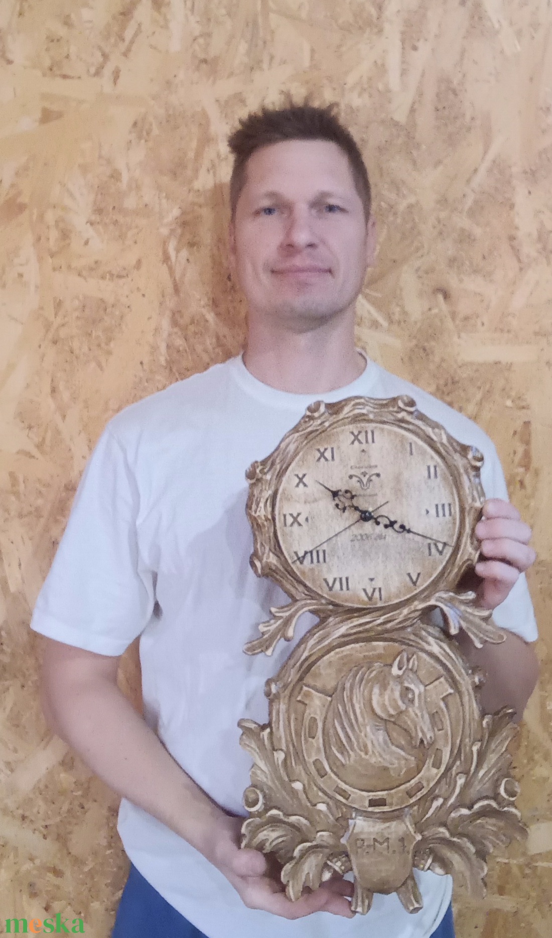 lovasóra lovasajándék lovasfaragás lovastermék lóóra óra faóra lovasoknak