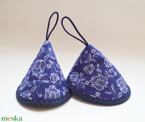 Edényfogó, fedőfogó, fülfogó - kékfestő mintával, sötétkék szegéllyel (2 db)