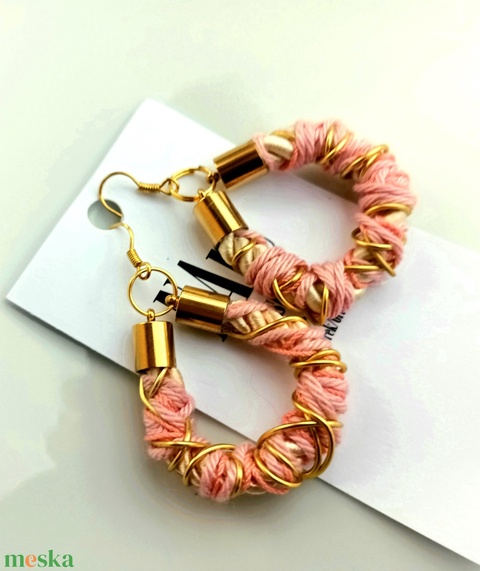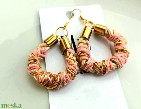 Rózsaszín, arany zsinór, fonal fülbevaló