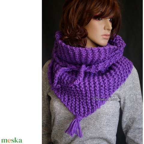 "ZOJA"CHUNKY-KENDŐ - kézzel kötött gyapjú vállkendő / ibolya