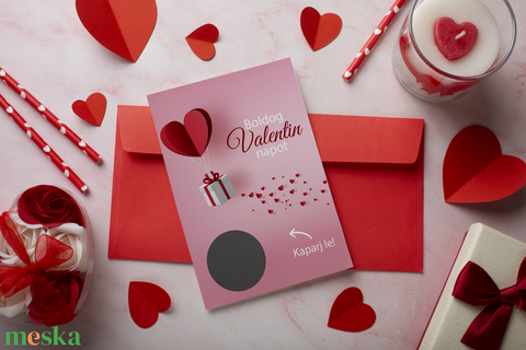 Lekaparható Valentin napi lap egyedi szöveggel, kaparós sorsjegy
