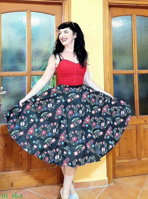 Folk Rockabilly szoknya matyó mintás