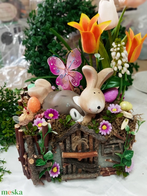 Nyuszi lak, húsvéti,tavaszi(nagy) asztaldisz, lakásdekoráció