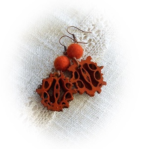 szalaggyapjú, nemezgömb, dióhéjszelet, fülbevaló akasztó