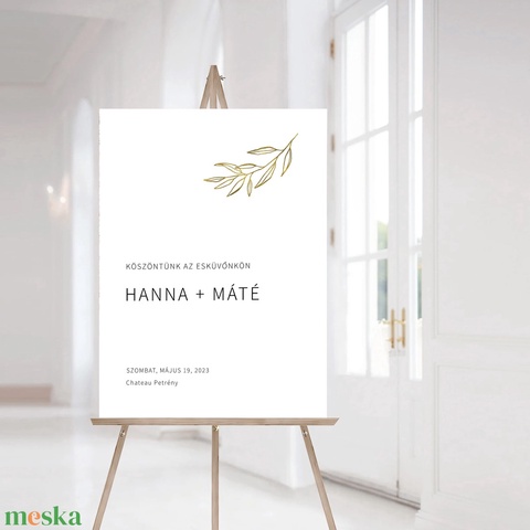 GOLDENLEAF Esküvő Köszöntőtábla, Levél Esküvő Köszöntőtábla, Arany Esküvő Köszöntőtábla