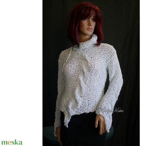 FRANCESCA - trendi kézzel kötött pamut-len pulóver / vízkék