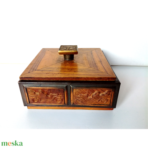 Vintage faragott kincses dobozka oldtimerekkel