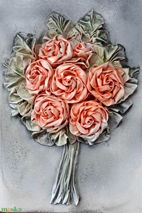 20x30cm-es rózsás falikép, textilszobrászattal készítve