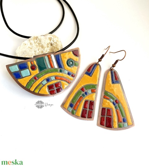 Hundertwasser - színes város - tűzzománc nyaklánc és fülbevaló szett