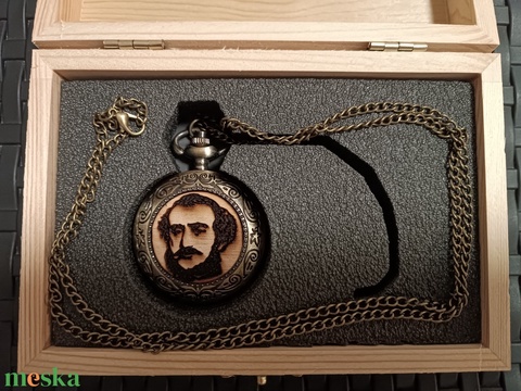 Széchenyi István arcképes Zsebóra ajándék Lánchidas fa dobozban egyedi kézműves