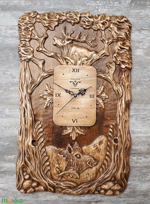 vadászóra vadászajándék szarvasóra vaddisznósóra trófeafaragás trófeaóra faóra falióra óra