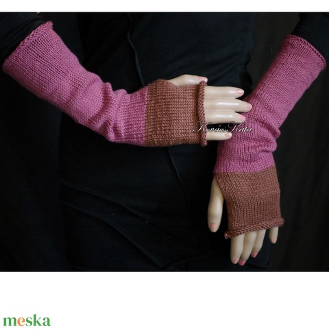 BOSZI KESZTYŰ / kasmír - exkluzív kézzel kötött kesztyűszár, kézmelegítő / mályva, barna KÉSZLETEN