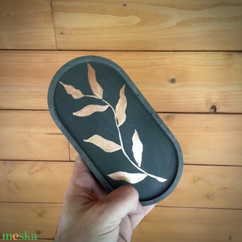 Ez a tálca 100% kézzel készült betonból, a levelek bronz színű akrillal festve.