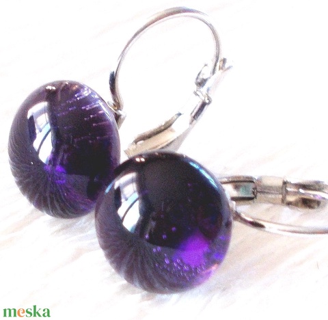 Nemesacél! Ametiszt lila üveg fülbevaló, ajándék nőknek névnapra, születésnapra.