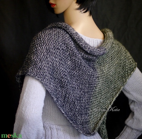 VINTAGE STAR - trendi kézzel kötött alpaka-pamut sálkendő / sötétkék-keki