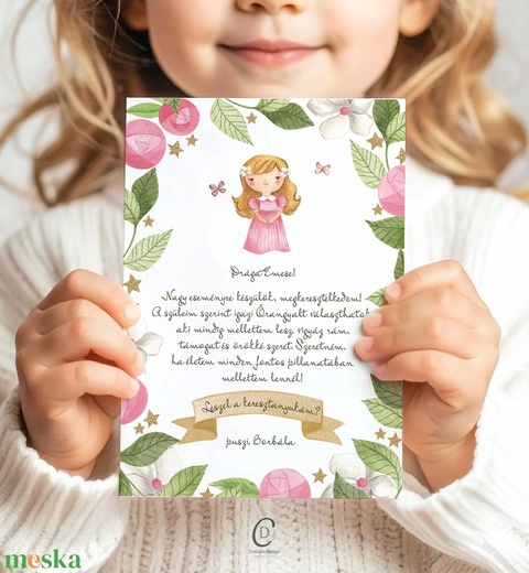 Keresztszülő felkérő kártya, személyre szabott ajándékkísérő, személyre szoló képeslap