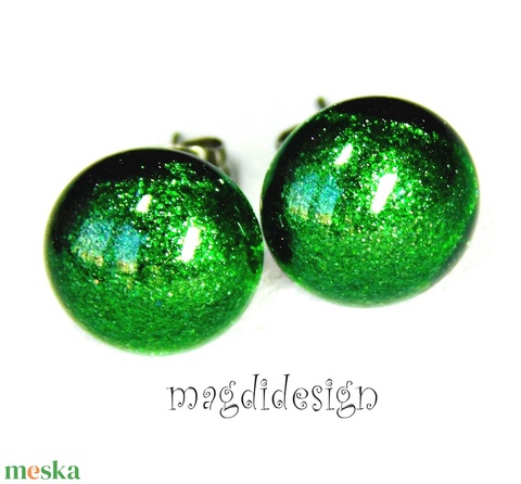 NEMESACÉL! Zöld aventurin csillám üvegékszer stiftes fülbevaló