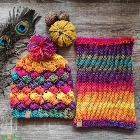 Szivárványos gyermekkor sapka-sál szettt kisgyerekeknek