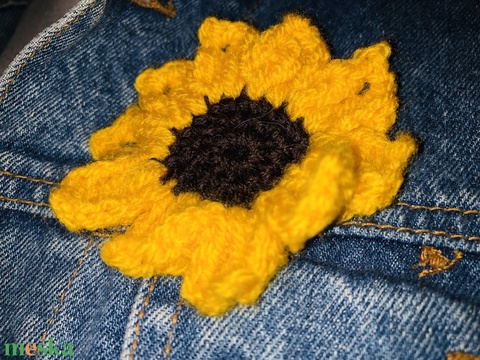 Kitűző. Sárga napraforgó virágos horgolt kitűző eladó
