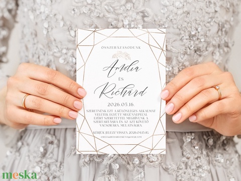 A meghívó két oldalt nyomtatott prémium minőségű matt papírból készül.