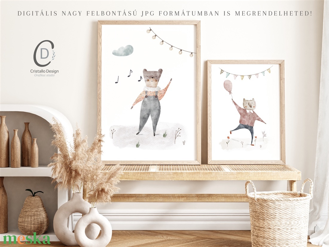 Kedves táncoló erdei állatokkal illusztrált akvarell képek, mely igazán remek ajándék, ha babaváró partira készülsz, vagy születésnapi ajándékot keresel.