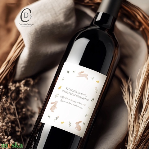 Húsvéti borospalack címke, pálinkás címke, nyuszis ajándékátadó, egyedi italos üveg matrica