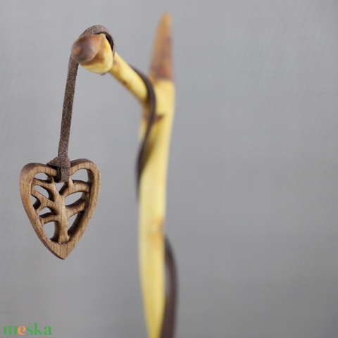 Hársfából faragott szív alakú életfa medál