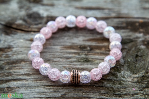 Rózsaszín aurakvarc karkötő cirkóniával