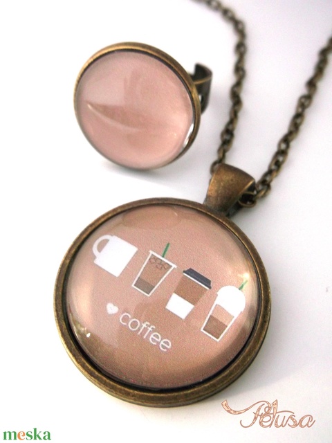 Kávé nyaklánc gyűrű szett Kávés Coffee