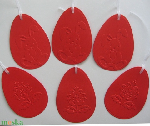 Húsvét - Piros tojás - dombormintával - ajándékkísérő, asztaldísz , dekoráció, csoportajándék - emlék - egyedi termék