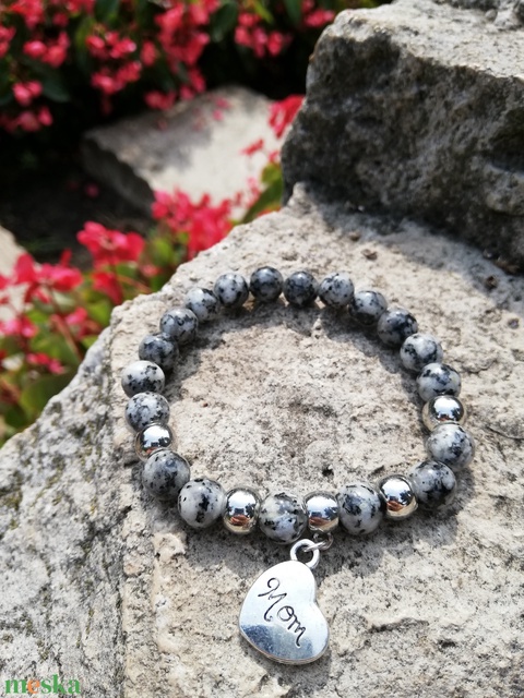 - Anyag/Összetevő üveggyöngy, gumidamil, fémmedál