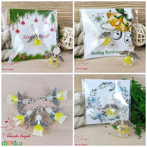 Angyalka medál sárga 5 db-os csomagban ajándékkártyával karácsonyi apróság kollégának osztálytársnak vendégnek