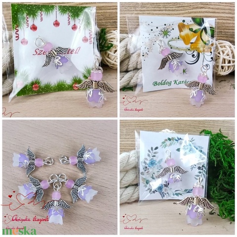 Angyalka medál lila 5 db-os csomagban ajándékkártyával karácsonyi apróság kollégának osztálytársnak vendégnek