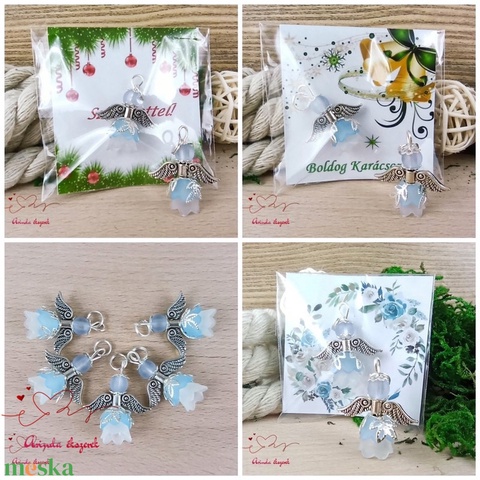 Angyalka medál sötétkék 5 db-os csomagban ajándékkártyával karácsonyi apróság kollégának osztálytársnak vendégnek