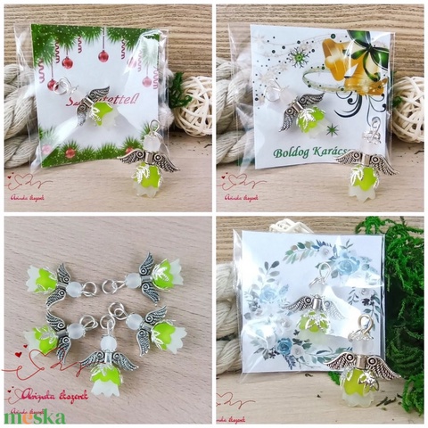 Angyalka medál zöld 5 db-os csomagban ajándékkártyával karácsonyi apróság kollégának osztálytársnak vendégnek