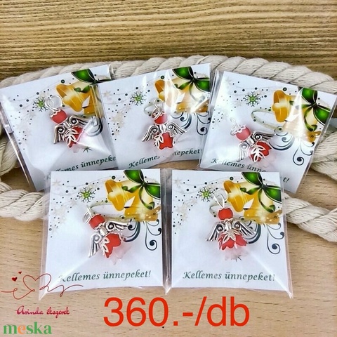 Angyalka medál piros 5 db-os csomagban ajándékkártyával karácsonyi apróság kollégának osztálytársnak vendégnek